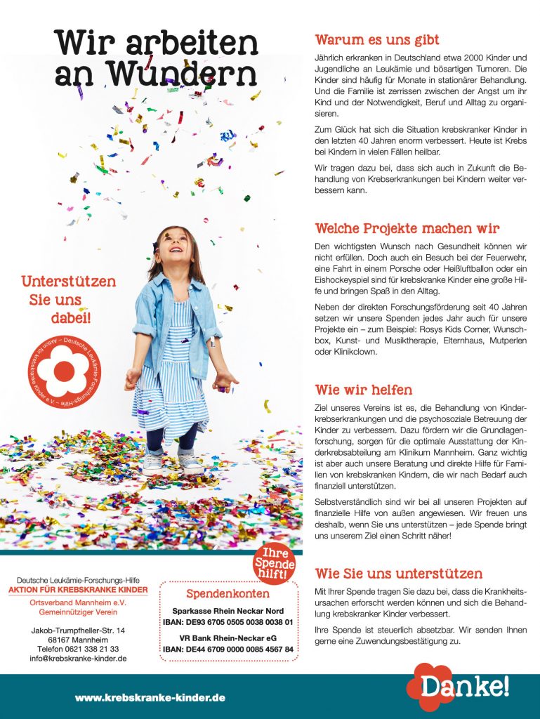 Alle Kinder, die in Mannheim gegen ihre Krebserkrankung kämpfen und hier behandelt werden, haben die Möglichkeit, in Therapiepausen, während der Erhaltungsphase oder in der Zeit danach, die Heimspiele der Adler Mannheim zu besuchen. Auch Geschwisterkinder sind stets herzlich willkommen.